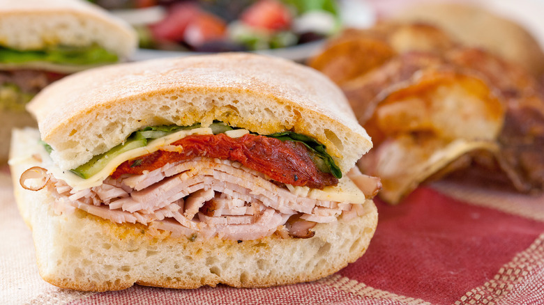 Honestly, compared to the heaviness of a chicken bake or the sugary sweetness of an ice cream sundae, it seems like a turkey sandwich should rank highly for Costco shoppers craving a quick snack while running errands. And, based off of the menu description, the sandwich should pack a textural and flavorful punch with ciabatta bread, Swiss cheese, and two spreads (sun-dried tomato and mayo-mustard).