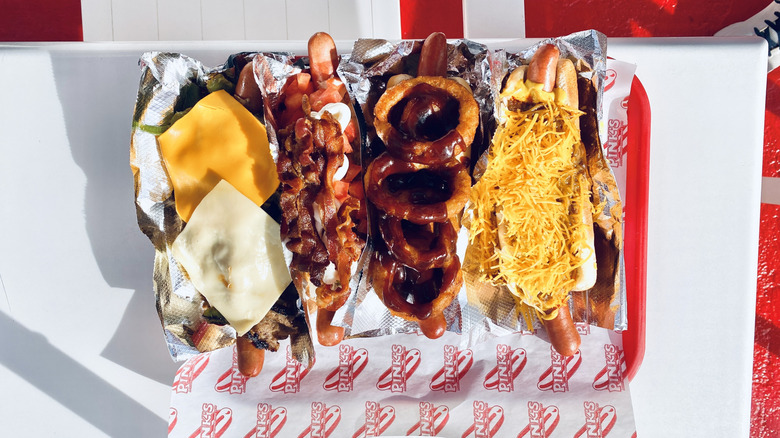Now the menu features the original lineup — prepared just like it always was — along with plenty of twists to keep things interesting. Richard Pink tells me there are roughly 40 different hot dogs on rotation at any one time along with 12 different burgers. And that's in addition to a variety of loaded fries, crispy onion rings, and generous slices of cake for dessert. (Five stars for the coconut cake with coconut frosting, which is Richard's favorite too.) When I asked how many hot dogs were going out the door, Richard bet an average of 1,200 to 1,500 hot dogs were sold every day. Check my frankfurter math, but that's a whole lotta weenies.