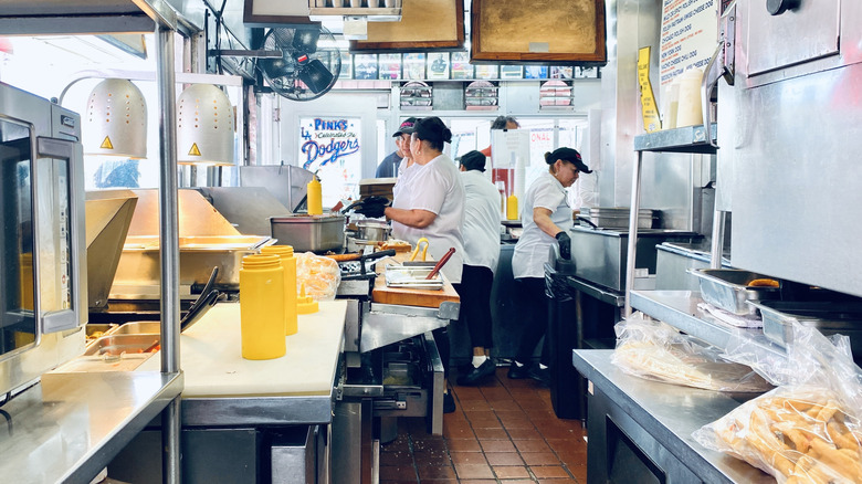 Pink's closed for a full five months, following local ordinances. In late 2020, it opened for a time before temporarily shutting down once again. Luckily for fans, once the dust settled, Pink's came back without missing a beat — with most of its loyal staff on board. "Many of them that are behind the counter right now have been at Pink's for 20 or 30 years," Richard explains. When I remark with a wink that it must be a pretty okay place to work, he smiles, saying, "They don't leave. We take really good care."