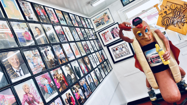 The celebrity photo wall at Pink's showcases some of the biggest names in Hollywood, with autographed headshots from stars like Robin Williams, Nicole Kidman, Aretha Franklin, Quentin Tarantino, Stevie Wonder, Snoop Dog, Serena Williams, and Cindy Crawford. But it's not just about who's been there — it's about who grabbed a hot dog hoping for a big break.