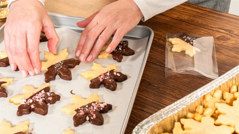 Offering guests refreshing and acidic fruits like cranberries, apple slices, and orange slices will balance the richness of baked goods and spreads. Try dark chocolate-covered pretzels for a little bit of bitterness and salt to break up the sweetness. Chef Tosi's advice for homemade whipped cream can make a great topping for some of these desserts as well — imagine dipping some chocolate and caramel-coated snacks in that fluffy confection. Snacks are supplemental, but cookies are here to steal the show.