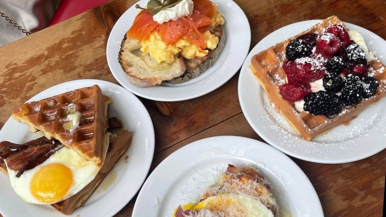Other breakfast favorites like eggs, sandwiches, and waffles are also delicious choices. Plus, you can enjoy lighter bakery options like scones, croissants, or other pastries with Buvette's fresh-squeezed juices or coffee. The restaurant also offers a delightful lunch and dinner menu and a charcuterie option that's great to enjoy with wine.