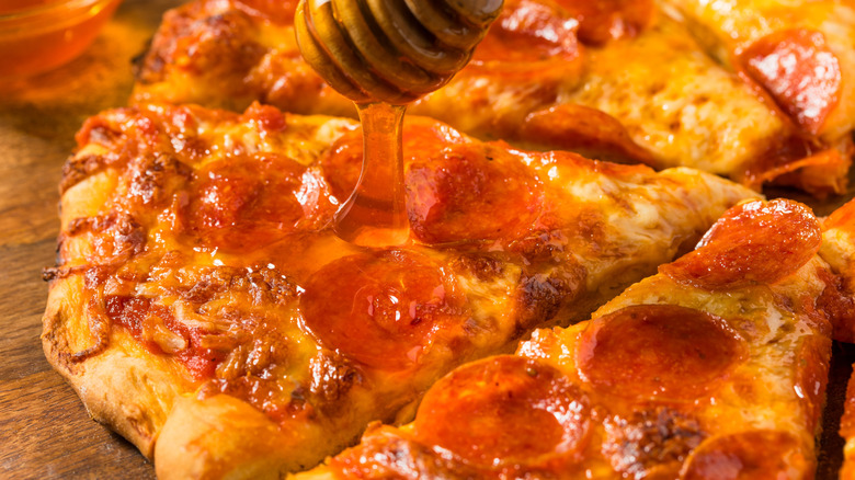 The ingredients you choose to put on your pizza depend on the meat you want to feature on your savory pie. Nicole Bean says, "For example, pepperoni pairs extremely well with honey." For an extra kick of spice, try using hot honey, which also works wonders for plussing up frozen pizzas. In terms of other popular meat toppings, she says, "Sausage is very well balanced by lemon zest and ground beef's best friend is sautéed onions."