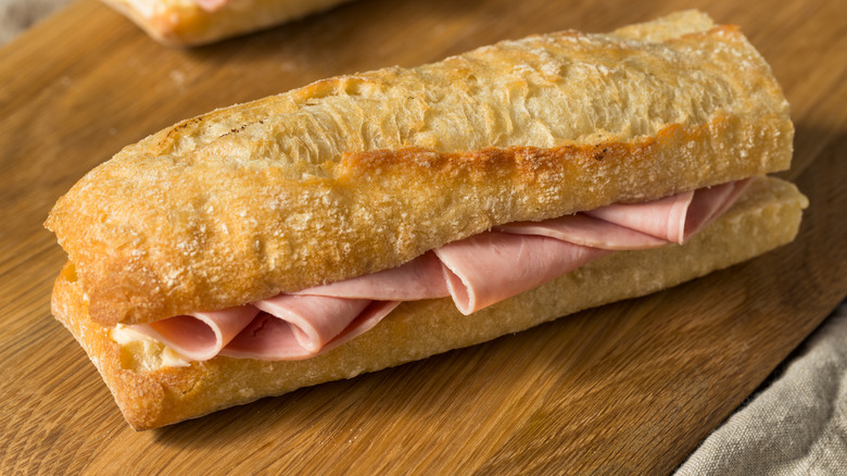 France may be known for the complexity of its cuisine and its elaborate sauces and pastries with dozens of ingredients, but some of the country's most-beloved dishes are its simplest. A case in point is the classic jambon beurre (ham and butter) sandwich. And yes, that's all it is: a split segment of baguette, a smear of butter, and a few layers of boiled ham. It's not exactly high drama, but it's filling and comforting — and if done right, supremely satisfying.