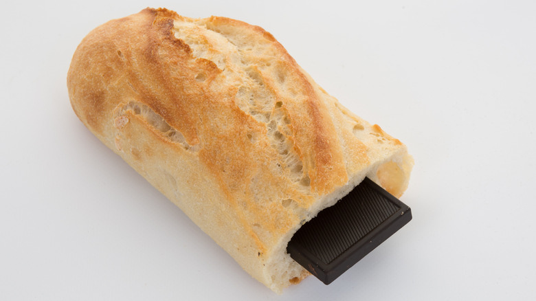 I first encountered this second type on a bus trip during my junior year abroad in Tours, France. During the long ride, our trip organizers handed each of us one of these treats, and at once, every student on the bus had the same thought: "Where has this been my entire life?" I got to see (and make) this many times again during my nannying stint. Every afternoon at 4 p.m., I'd cut a fresh baguette into age-appropriate lengths, stick a knife down the middle of the soft white crumb of each segment to form a slot, then stuff each slot with a few segments broken off a chocolate bar before handing them off to my charges. It's just that easy — and more flavorful than its simple ingredients may suggest.