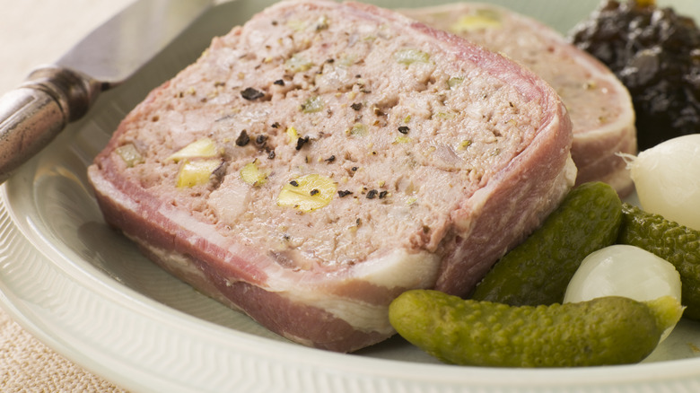 While you can find dozens of pâté types in France, ranging from warm layered pâtés wrapped in pastry to smooth chicken liver pâté flavored with brandy, the type you're most likely to find in a corner café sandwich is the classic pâté de campagne, or country pâté — a hearty, coarse, and firm pâté of pork, pork liver, herbs, and garlic. Combined with a crusty fresh baguette, it's bold and flavorful enough to make a great sandwich by itself — but a bit of mustard and a few tangy, crunchy cornichons make it even better.