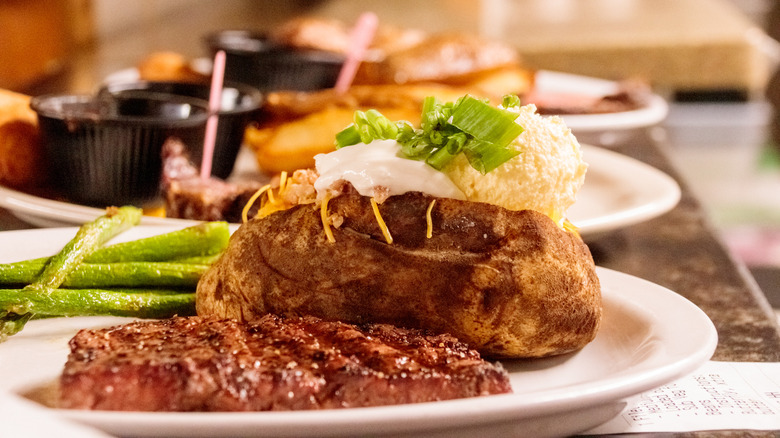 Order the Indian Creek Steakhouse food challenge and you'll sit down to a 4.5-pound slab of Idaho-raised beef, perfectly seared over an open flame in an applewood firepit. From your table, you'll be able to watch one of the best cuts of beef for steak sizzle as it cooks in the open kitchen. The giant sirloin will dwarf other, smaller cuts of ribeye, sirloin, chicken, and seafood; a marbled pattern of fat melting into lean meat. When it's delivered to your table, you'll realize there's more to this challenge than meets the eye. To win, you're not only required to eat the whole 72 ounces of meat set before you; you have to also eat a side salad, a baked potato, a side of buckaroo baked beans, and a piece of fried bread. Plus, you have a one-hour time limit to finish the challenge.