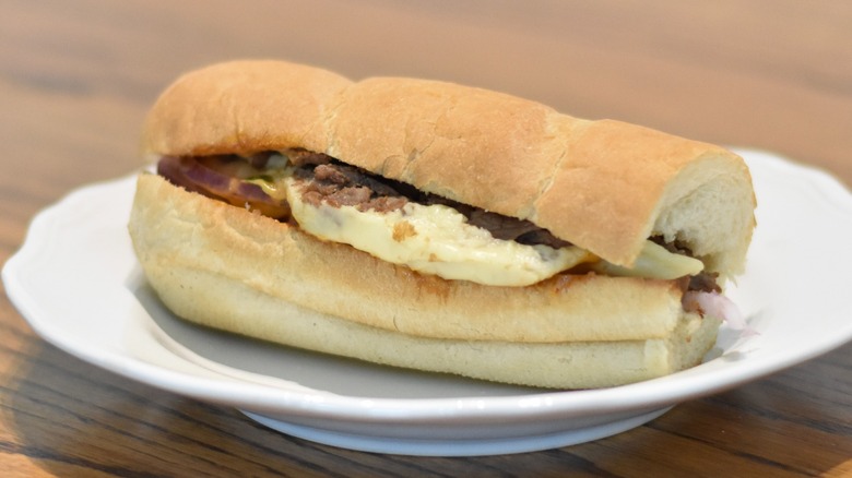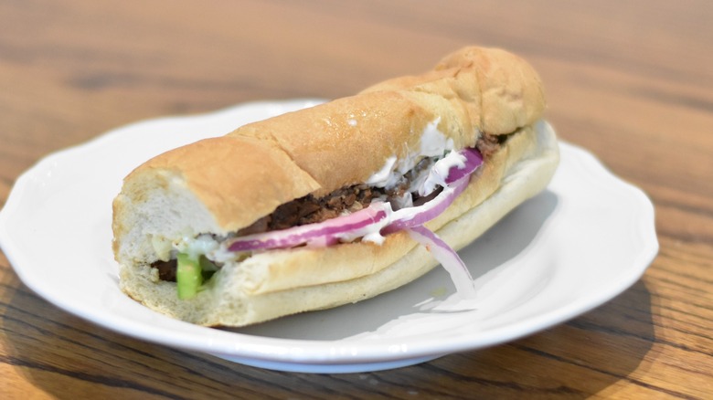 Pepper jack cheese adds a little spice to The Outlaw which is topped with steak, green peppers, and red onions. It also features a Baja chipotle sauce for some extra heat and flavor. It was one of the few sandwiches that we tried with a true kick, but it wasn't overpowering. It was this extra bit of smoky heat that prompted us to put this sandwich high on our rankings list.