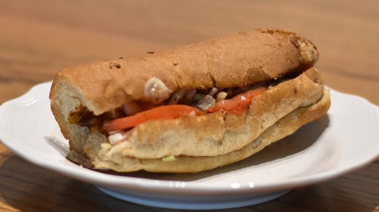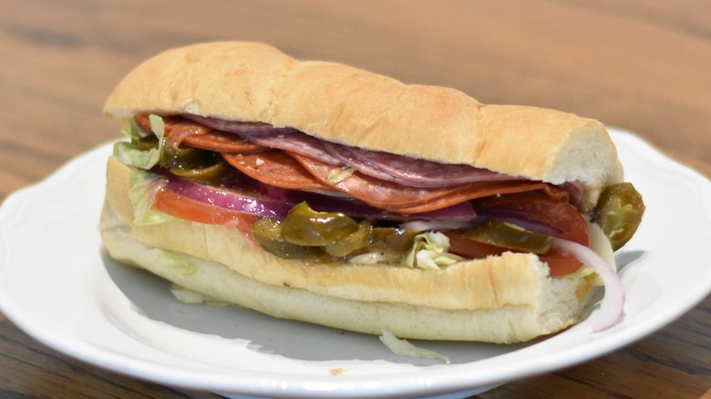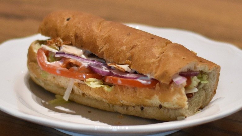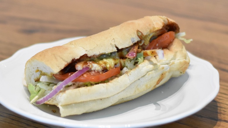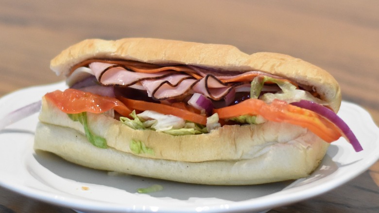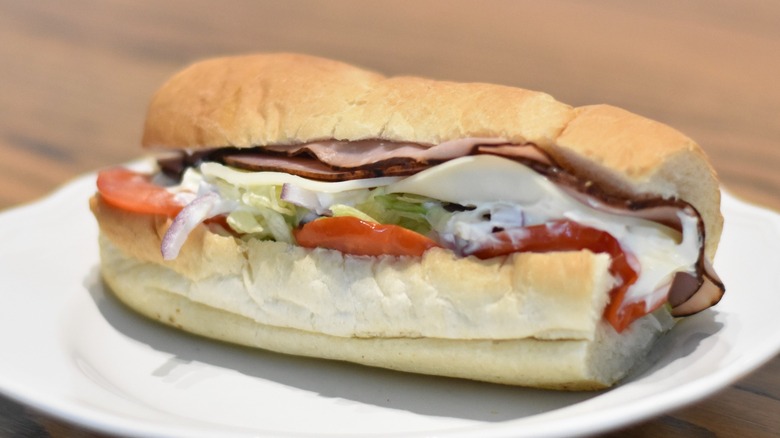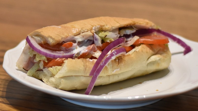 It comes with both regular mayo and Parmesan vinaigrette. This gave it a more complex flavor and was a big factor in our high ranking of this sandwich. The combination of the multi-layered meats plus two condiments worked well. It also had a generous amount of tomatoes, shredded lettuce, and red onion. Our only critique is that the sandwich is a bit messy due to the sheer amount of ingredients sandwiched on the Italian bread. But as long as you have some napkins at the ready, it's definitely worth a little extra clean-up.