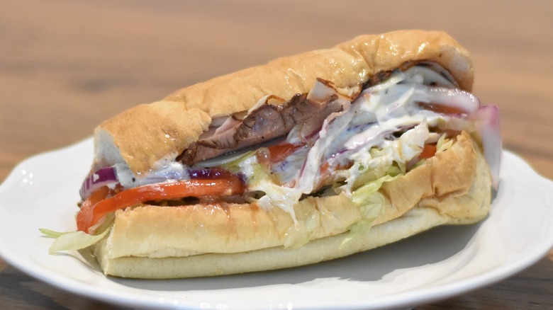 We really liked the combination of roasted garlic aioli with the tomatoes, but the red onion was a bit too overpowering for us. You can get it without the onions, which is what we'd recommend. The aioli also has hints of Italian herbs, which we really appreciated. It gave this sandwich a more unique flavor compared to many of the other options with roast beef, which tend to be heavier on mayo and cheese. In fact, we liked the garlic aioli so much that we were happy to learn that you can get it at the grocery store to use on dishes at home.
