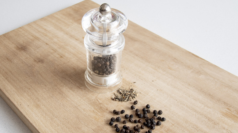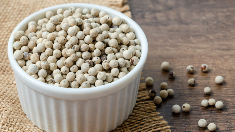 Most chefs agree that salt and pepper are the most important seasonings for a good burger, but you can put a new spin on these classics by swapping out white pepper for the standard black peppercorns instead. It adds a similar flavor and spice, but is typically a little bit smoother. Both white pepper and black pepper come from the same plant but are prepared in different ways, which ultimately makes subtle changes to the end result. To make white pepper, ripe peppercorns are soaked in water to remove the outer skin before drying. The result is a milder spice that still gives a tiny kick to bring out the meat's natural flavor. Depending on how it is made and the specific brand, white pepper has a slightly earthier taste as well.