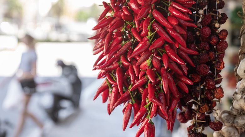 Fans of "Beat Bobby Flay" have probably seen Flay use Calabrian chiles in his dishes countless times. In fact, the chef said on Instagram, "People make fun of me for using these so much, especially on "Beat Bobby Flay." But in my restaurant Amalfi we use a ton of these. It adds great flavor to food." Flay has used Calabrian chiles in everything from pesto and paella to pasta and tuna tartare with crispy rice.