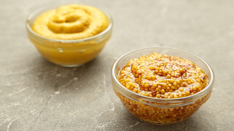 Besides using mustard as a condiment, Flay also uses it often in his cooking. For example, on an episode of "Bobby Flay's Barbecue Addiction," the chef made mustard aioli grilled potatoes with Dijon and whole grain mustard. He said, "You get the spiciness from the Dijon mustard. You get that little pop and that texture from the whole grain mustard. It's really nice." He also uses mustard as a glaze for salmon and roast turkey, makes homemade honey mustard as a side sauce for fried chicken, and adds Dijon and whole grain mustard to his Carolina-style barbecue sauce.