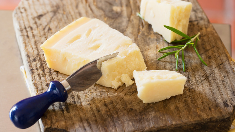 Many chefs wouldn't dream of stocking their fridges without a good Parmigiano Reggiano and Bobby Flay is no exception. This hard, salty Italian cow's milk cheese plays a starring role in several of the chef's dishes including Flay's chicken Parmesan, minestrone, and eggplant Parmesan. He's also a fan of Pecorino Romano, another Italian cheese that's hard and salty as well but made with sheep's milk. Flay even believes that these cheeses have a place in seafood dishes, which is something that many Italians would balk at.