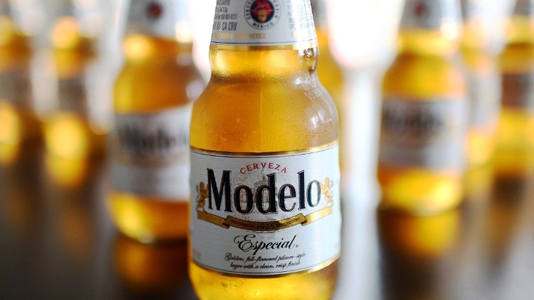 Latin culture has long been a point of fascination for Americans, with Spanish being the second most spoken language in the United States. As cultures blend into one another, it makes sense that people have developed an affinity for a variety of Mexican beverages, too. Tequila and mezcal likely have a spot on most bar shelves, but you'll find beers like Modelo and Corona in many refrigerators across the country. These lagers are the gold standard for beer that's literally gold in color. They taste crisp, dry, and balanced in hops and malt. Some report an aroma or flavor akin to honey, wheat, or corn. Both Modelo and Corona share the same main ingredients: water, barley malt, non-malted cereals, and hops. But the greatest strength of Mexican beer seems to be how easy it is to pair with food.