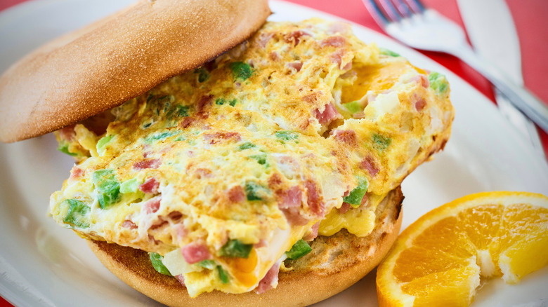 The Denver sandwich is the ancestor of the Denver omelet, that mix of eggs, cheese, ham, bell peppers, and onions that's common on breakfast menus. Theories about its origins include attempts to cover up the flavor of stale eggs and the use of egg foo young as a sandwich filling. The Denver sandwich was extremely popular in the 1950s, but by the 1980s, the filling took center stage as a standalone omelet.