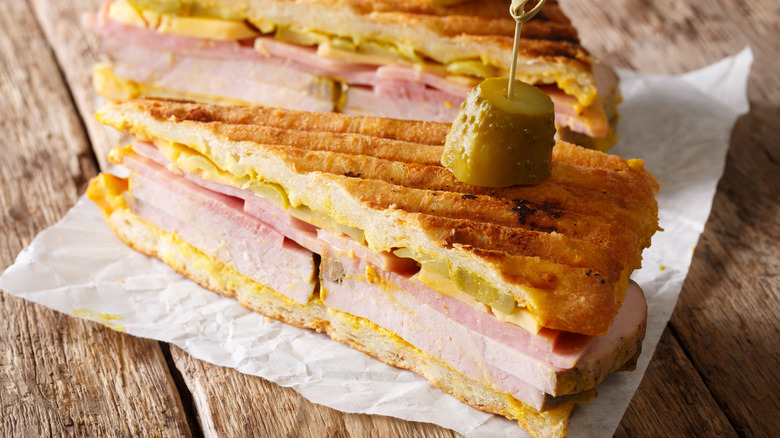 The Cuban sandwich, or Cubano, is a glorious combination of ham, roast pork, salami, pickles, Swiss cheese, and mustard on Cuban bread, and the whole thing is compacted in a sandwich press that heats up the food and melts the cheese. Both Tampa and Miami lay claim to the sandwich, but Cuba is the real origin point.