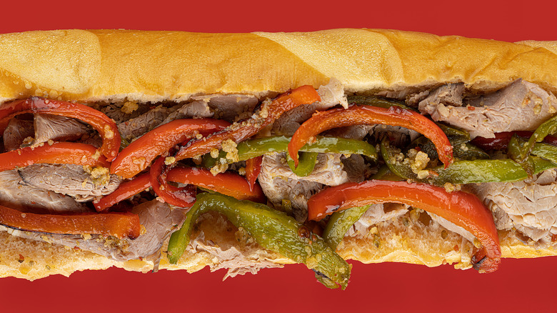 The Italian beef sandwich sounds a lot like a French dip at first — roast beef on a roll with an au jus-like dip — but the Italian roll specifically uses Italian bread and tops the meat with giardiniera, a pickled vegetable relish usually made with peppers. The sandwich is truly Chicago's own, with its origins in the Little Italy neighborhood most likely in the 1920s.