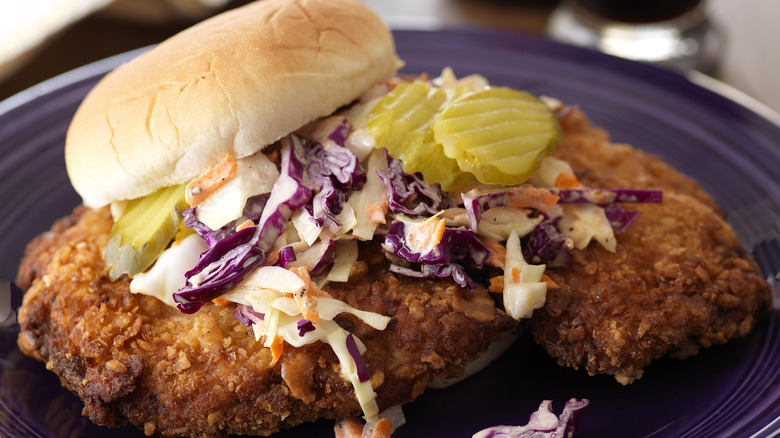 Another pork chop sandwich hits the list, this time in Montana. However, this isn't like Indiana's breaded and fried tenderloin at all. This pork chop is battered and deep-fried, and fits a hamburger bun very neatly. Pile on burger toppings like lettuce, pickles, and tomatoes, and get two pork chop patties if you want. Pork Chop John's is the chain credited with creating the sandwich.