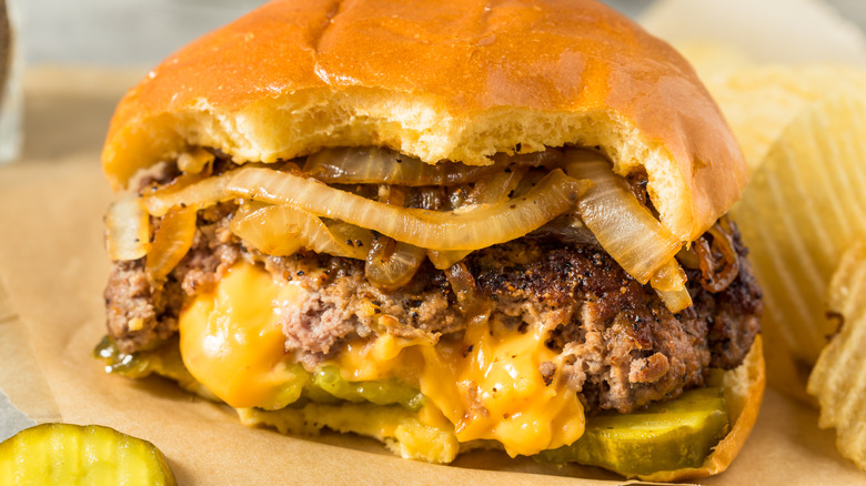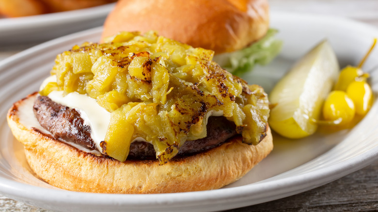 New Mexico is very well-known for its wonderful green chiles, be they Hatch or another variety. Someone — it's not known exactly who — placed diced green chiles on a cheeseburger, and the rest is delicious history. The cheeseburger is so popular in the state that the New Mexico Tourism Department has a page dedicated to the "New Mexico Green Chile Cheeseburger Trail."
