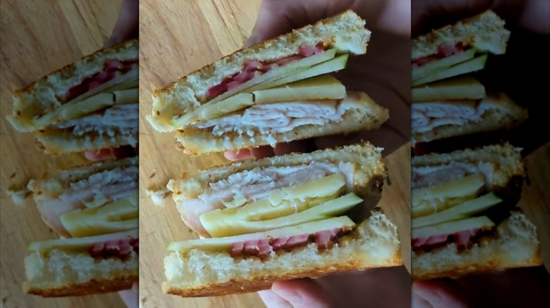The Vermonter is a sandwich filled with deli meat, apple slices, and cheese. Or rather, many Vermonters are filled with those. This is a sandwich where the fillings can be very different, making it hard to tell if the Vermonter you order at one restaurant is going to have the same ingredients as what you ordered in other restaurants. Always check the menu carefully before assuming you know what you'll get.