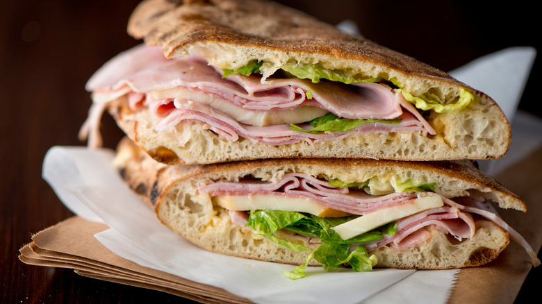 Rhode Island hot wieners may get a lot of attention for their special take on the hot dog, but the state's truly iconic sandwich is the good old Italian grinder. This is a submarine-style sandwich ("grinder" is just what Rhode Islanders call subs) with a combination of deli meats like salami and mortadella, plus provolone cheese, tomatoes, peppers, olive oil, and more.