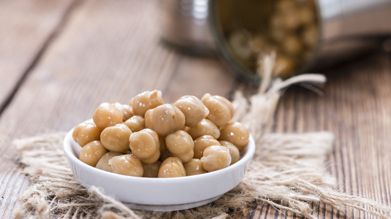 For starters, consider the differences between fresh and canned chickpeas. Freshly cooked chickpeas have a creamier texture and a more noticeable taste than their canned counterparts. However, they require some work. To prepare them for a faux tuna salad, you'll want to soak the beans overnight to soften them for easier digestion before simmering them in a pot to complete the textural transformation. Canned chickpeas, on the other hand, are much more convenient and time-friendly. Just pop the can, give them a rinse, and integrate them into your not-so-tuna salad. If possible, opt for sodium-free canned chickpeas to prevent an overly salty taste that distracts from the delicate and nuanced flavor of the dish's ingredients.