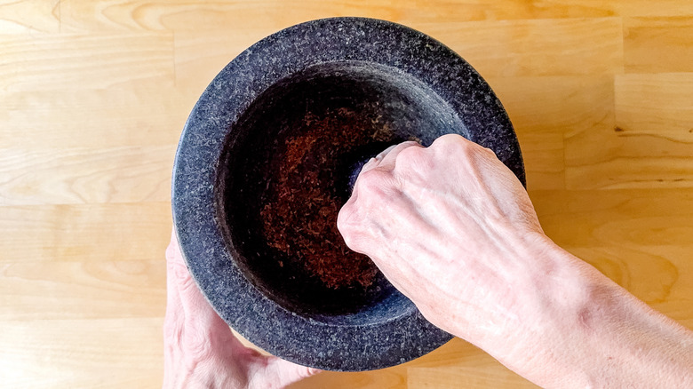 - Use a mortar and pestle to grind the caraway seed into smaller pieces.