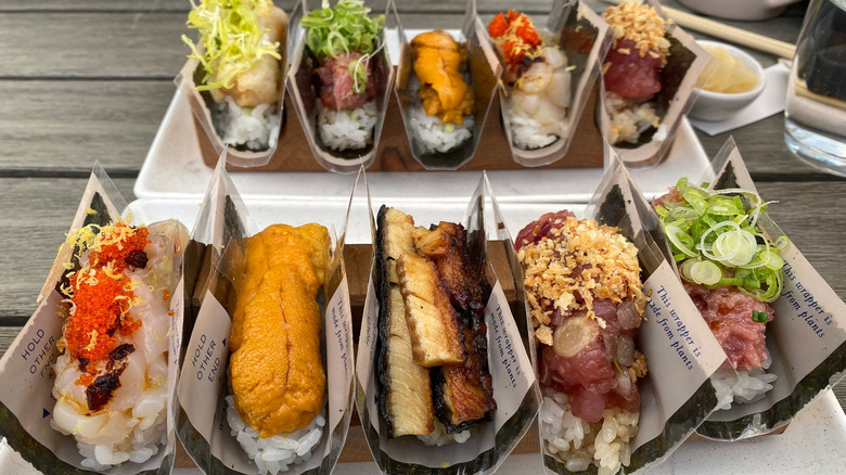 You can make selections to match your budget, with hand rolls ranging from $7-$27. But the hand rolls aren't that filling, so you'll want to order a few to make a whole meal's worth of food. DOMODOMO has lunch hours from 12-2:30 pm and dinner hours starting at 5 pm daily. You can also order takeout from the restaurant.