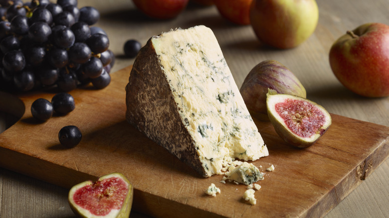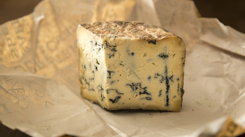 Blue cheese is one of those foods that you either love or hate. Enthusiasts of this funky-smelling cheese can't get enough of finding creative ways to use it — whether that be as a salad dressing, in a creamy dip, or even as a compound butter melted over a juicy steak. However, those who aren't a fan of blue cheese may be weirded out by the fact that it has a strong odor, has a distinct taste, and is quite literally made with mold. Normally, when you find a food item in your fridge that clearly has some mold-induced discoloration, you throw it right in the trash. Eating moldy food can make you sick, so why is blue cheese safe to consume if it's meant to be moldy?