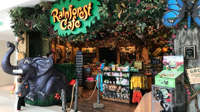 Gorillas, tigers, and monkeys — oh my! While it was handily beat by the Chuck E. Cheese animatronic band when it came to robot animal entertainment, Rainforest Cafe went about mechanical fun in what was once a brand new, eccentric way. Instead, this icon of themed dining chains in the U.S. immersed diners in a dark, noisy rainforest, surrounded by talking trees and moving snakes. While the loud thunderstorms that occurred in 30-minute intervals may seem like overkill, Rainforest Cafe didn't take experiential dining lightly. But if you're looking for the largest outpost, search no further than the Rainforest Cafe at Disney's Animal Kingdom in Lake Buena Vista, Florida.
