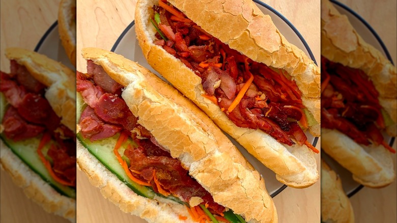 Costco is partly responsible for that, as for about seven Australian dollars, customers can order it freshly made. You don't even need to be a member to get your hands on one of the sandwiches. These rolls can be made with your choice of either chicken or pork, and come with some of the dish's usual veggies, such as shredded carrots. Unfortunately, the offering doesn't seem up to par with people's expectations. It has garnered negative reviews online, with one person stating they were "a bit disappointing as the meat was dry and the portion was smaller." Nick and Helmi, a food-reviewing couple on TikTok, shared similar sentiments in saying the bread was dry as well, and people were quick to agree in the comment section that the menu item is overall a flop.