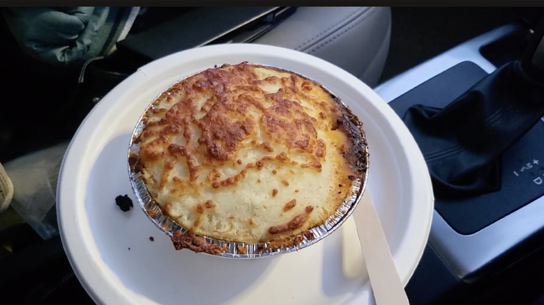 The Costco version of the pie seems to have achieved this nicely in the eyes of those who have tried it. For example, as one YouTuber showed off the pie's foil pan packaging and beautifully crusted edges, he was also sure to commend its pleasant scent and generous size. After reviewing its individual elements, he concluded that though the cottage pie is "nothing to write home about," as it lost points for the mashed potatoes not being fluffy enough, it's still tasty and is a stellar value meal considering it costs only a bit over three pounds.