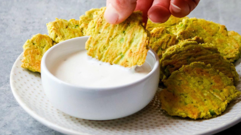 Avocados fit so perfectly into so many different lifestyles that there are now thousands of recipes swapping the fruit for traditional ingredients. One TikToker, chef Erin Morley, features a recipe for homemade chips using avocado, egg, Parmesan cheese, and Everything But The Bagel seasoning. She mashes the avocados and mixes in all of the other ingredients except the Everything But The Bagel seasoning. Using an ice cream scoop, she spoons the mixture onto a parchment paper-lined baking sheet and then flattens each into the thickness of a cracker. She gives each a heavy dose of seasoning before putting them in the oven for an unspecified amount of time. Other recipe creators and social media influencers put them in an oven at 325-350 degrees Fahrenheit for 15-20 minutes.
