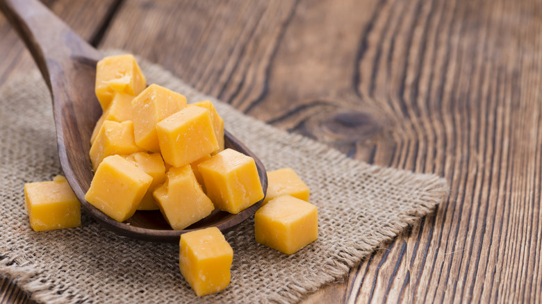 It isn't cheddar's origins in Cheddar Village in Somerset, England, that make it such a good choice for nachos. It's the process of making cheddar that makes it special. Made from sliced and stacked cheese curds, more or less, cheddar delivers a different taste depending upon how aged it is, with mild cheddar being the youngest version of the cheese at one to three months and vintage cheddar being the oldest version at 12 to 24 months. (It's reasonable to say that vintage cheddar is the sharpest cheddar there is.)