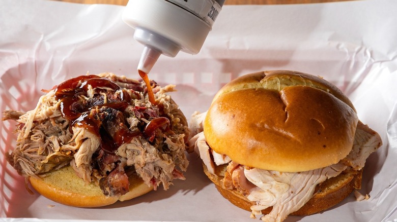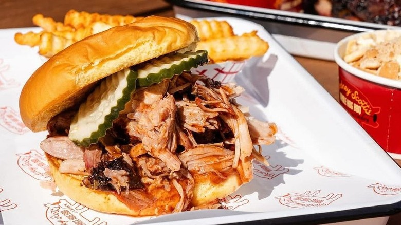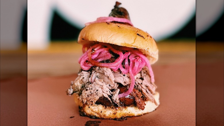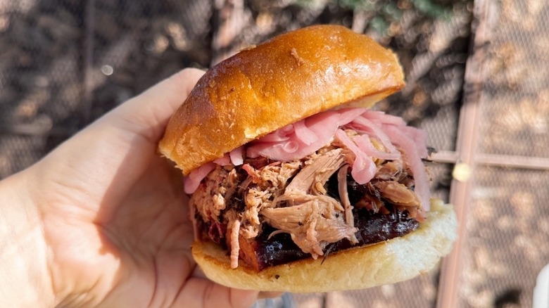 Pulled pork sandwiches aren't overly difficult to make at home, but they do take time and a little bit of know-how to get them just right. That's why so many people choose to get their pulled pork fix at barbecue joints where experienced pitmasters create ultra-craveable sandwiches. There are plenty of places to get pulled pork sandwiches in the U.S., but some spots truly stand out for their sublime sandwiches.