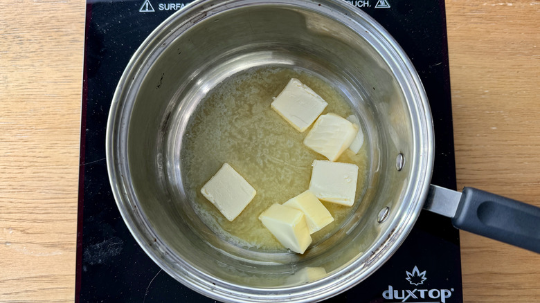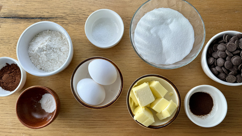 A standard brownie batter made with dark chocolate and cocoa is simply baked in a sheet pan and broken into shards to create this iconic treat. To make brownie brittle, you'll start with some basic pantry staples. Unsalted butter adds richness, while chopped dark chocolate (or chocolate chips) is melted along with it. When choosing chocolate for making brownies, note that chocolate chips often contain stabilizers to maintain their shape, making it harder for them to melt properly. Chocolate bars, on the other hand, typically include higher levels of cocoa butter, and will melt more smoothly into your batter.