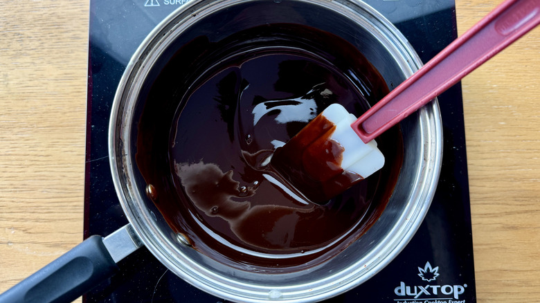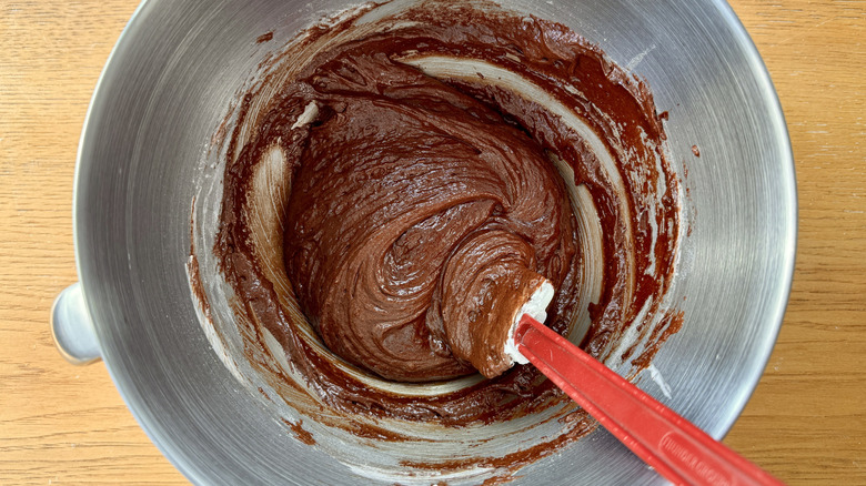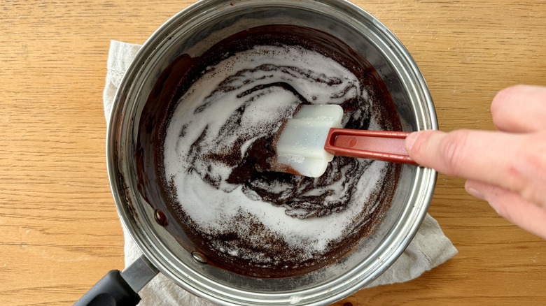 - Stir remaining ¾ cup sugar, cocoa powder, espresso powder, and salt into melted chocolate mixture until smooth.