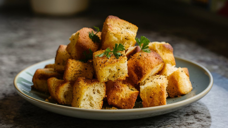 When isn't crusty bread a good thing? Croutons are perfect little bites of crusty, herby goodness, and they're actually pretty versatile. They make for a creative soup garnish and contribute added texture to a classic Caesar salad. The topping that comes in big bags at the grocery store is good, but croutons can be even more light and flavorful when you make them yourself. The common salad topping can be made from everything from stale sourdough to buttery leftover croissants. Perhaps most importantly, croutons can also be made in your air fryer.