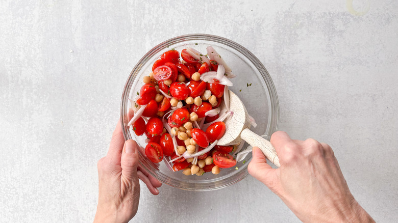 Step 3: Combine the chickpeas, shallot, tomatoes, and seasonings