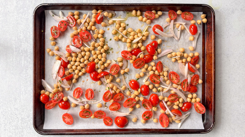- Transfer the chickpea mixture to the baking sheet.