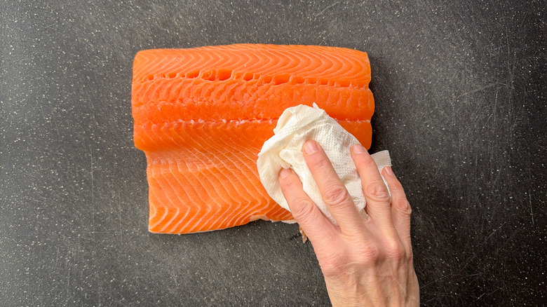 Step 6: Rinse and dry the salmon