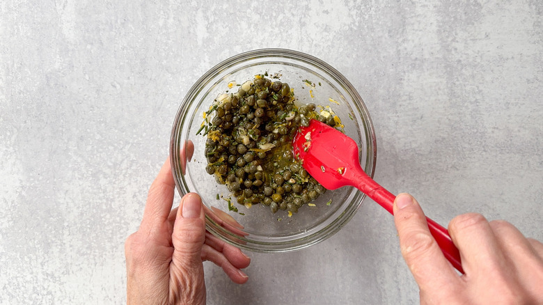 - Top the salmon with the caper mixture.