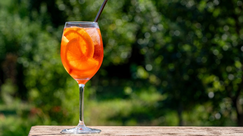 It may seem counterintuitive to start this list with a somewhat controversial pick, but you can't deny the appeal of an Aperol Spritz — especially if you're on holiday in Italy. Comprised of the spirit Aperol (known for its distinctive orange color and a taste that's both slightly bitter and citrusy), plus Prosecco and soda water, garnished with an orange slice, and served in a wine glass, the Aperol Spritz is frequently ordered as an aperitivo before dinner as it has a lower alcohol content and is refreshing. It's a light drink perfect for a summer day — or really, any time.