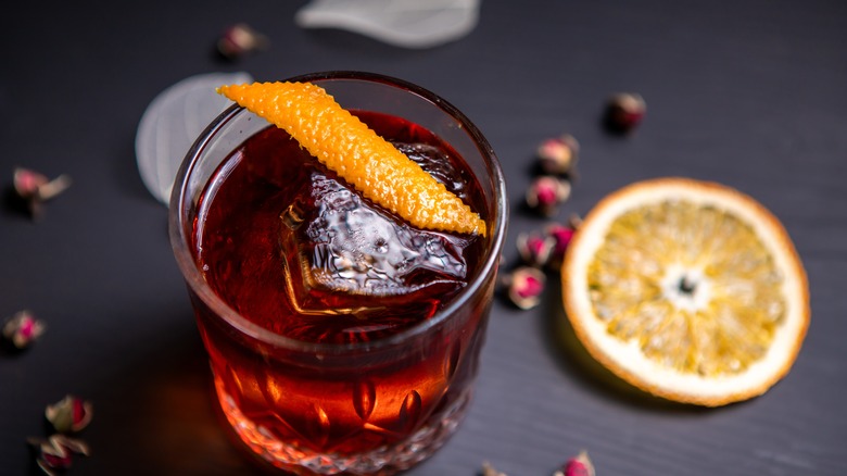 Many well-respected bartenders cite the Negroni as their favorite drink to make or drink, particularly at the end of the night. It's the definition of a classic, having inadvertently been invented in Florence in the early 20th century by a man named Count Camillo Negroni when he asked to replace soda water with gin in an Americano. We covered the Boulevardier earlier, but the original Negroni uses gin, Campari, sweet vermouth, and an orange peel. Many variations exist, swapping out the base liquor or types of vermouth, but the classic Negroni will always be a staple of cocktail menus.