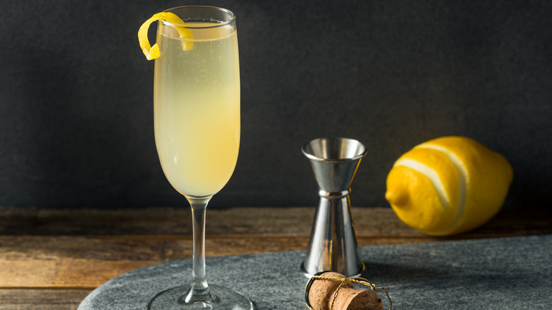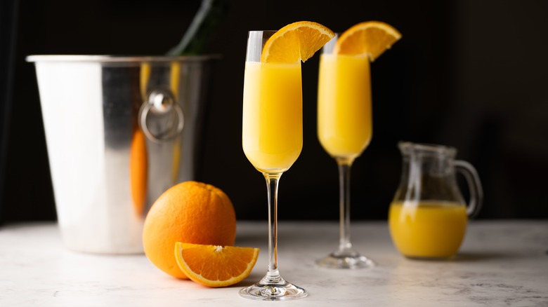 Another classic brunch drink has made the list, and it's deliciously simple, only consisting of two ingredients: orange juice and champagne. A fun piece of bartender lore says the filmmaker Alfred Hitchcock is the one to have invented this drink in San Francisco, while most acknowledge that the drink was created by a bartender at the Ritz in Paris as far back as the 1920s. You can change out the juice if you're not an orange fan, however, if you use peach purée that technically would make the drink a variation called a Bellini.