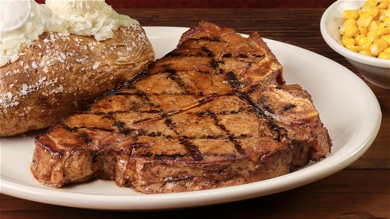 Another critique would assume that this steak is cooked from frozen, according to claims circling from self-identified employees online. Texas Roadhouse prides itself on making everything from scratch, saying that their steaks are "always fresh, never frozen." Some foods don't taste as good after sitting in the freezer, but there isn't a significant difference with steaks that have properly been flash frozen, and they can even retain more moisture that way. So, whether or not the rumors are true, you're still going to get a tasty, well-valued porterhouse at Texas Roadhouse if that's the cut of steak your heart desires.