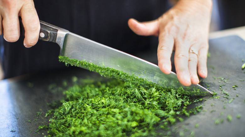The good news is, it doesn't have to be that way. Whether you're looking to incorporate fresh thyme, delicious dill, brilliant green basil, or any other herb into your cuisine routine, all you need is a little knowledge drop. That's why Chowhound recently caught up with a couple of chefs to get their take on all things herby. As Alex Mazzucca and Cara Duerr, co-owners of the plant-based restaurant and brand Seed to Sprout, say, "Don't be afraid to play around and have fun by incorporating fresh herbs into your favorite dishes, from sweet to savory!"