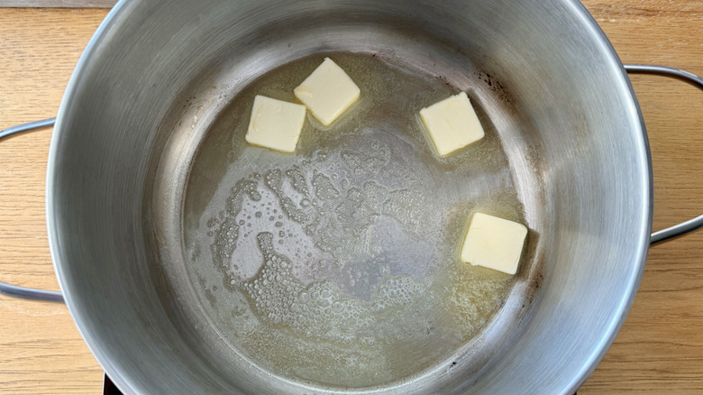 - In a large pot or Dutch oven, melt the butter over medium heat.