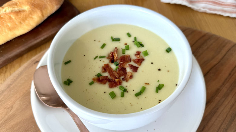 Recipe developer Katie Rosenhouse says, "The beauty of this soup lies in its simplicity—just a handful of ingredients come together to create a crave-worthy dish you'll want to make on repeat throughout the colder months." Whether you're looking for a cozy dinner on a chilly night or for a flavorful starter, this soup is the perfect combination of indulgence and elegance. Garnish with chives, crumbled bacon, and a sprinkle of crushed red pepper flakes for an extra layer of flavor that takes each spoonful over the top.